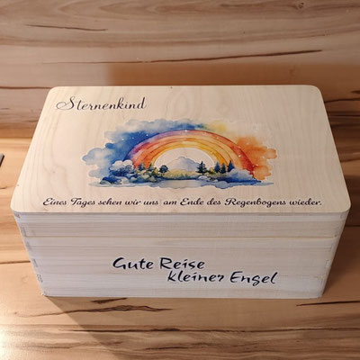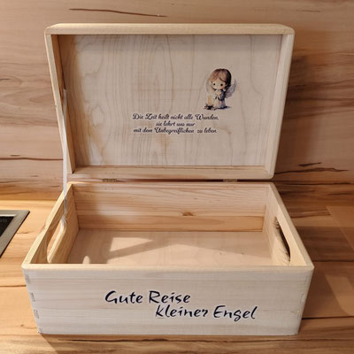 Öffnen danach die Erinnerungskiste, um besondere Erinnerungsstücke anzuschauen und sich an die Liebe zu deinem Kind zu erinnern.